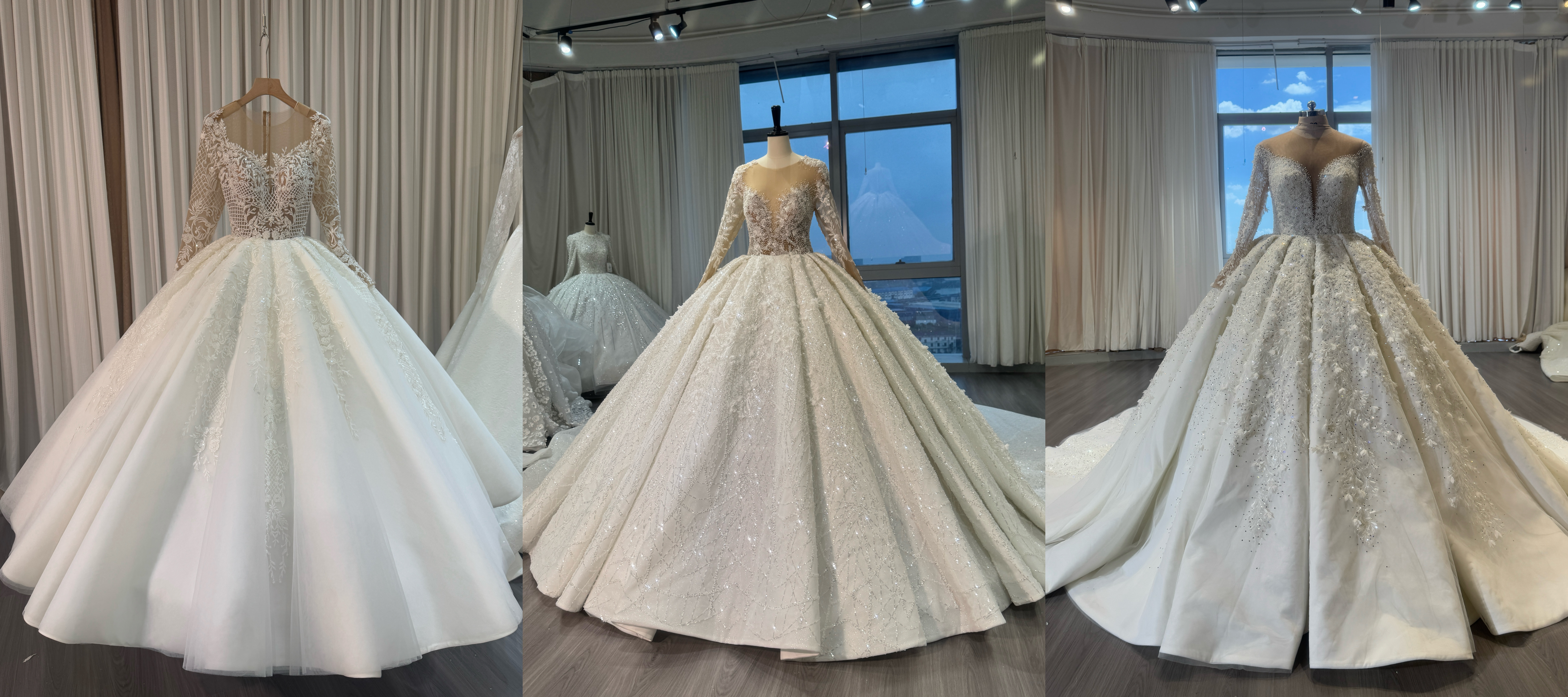 Luxury Long Sleeve Ball Gown Wedding Dress with Lace and Beading